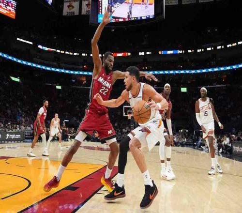 太阳过去3场连赢灰熊、尼克斯与奇才收获3连胜,热火过去3场连输森林狼、步行者与雷霆遭遇3连败。本场太阳缺少杰伦-格林,热火缺少罗齐尔。首节开局双方缠斗至9-9,热火连得4分,布克两罚全中,阿德巴约引领一波12-4攻势扩大10分优势。太阳回敬一波8-2攻势追到仅差4分,热火回敬一波9-5攻势拉开比分,首节比赛结束热火36-28领先太阳。首节热火26中16超过6成准星,其中三分12中4,阿德巴约5中4得到10+2+2;太阳27中10不足4成准星,其中三分11中4,阿伦3记三分11分。