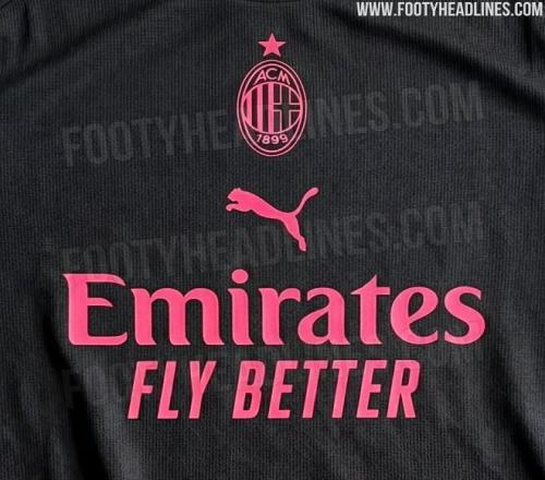 第三球衣则走向更加前卫的路线。2026-27赛季AC米兰第三球衣以“炭灰色”为主色调,这是一种接近黑色的深灰色,整体风格极具现代感。球衣标识则采用醒目的粉红偏红色作为点缀,在深色背景下形成强烈对比,视觉冲击力十足。